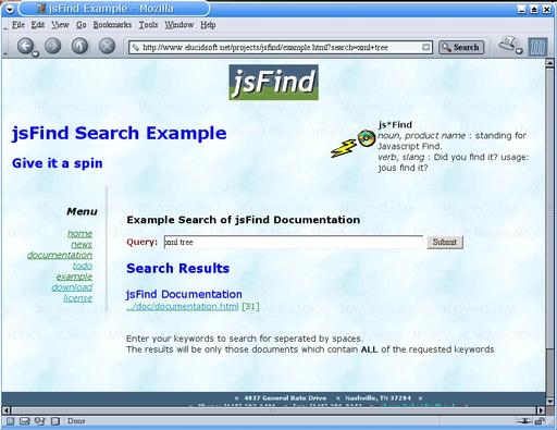End users need not worry about any of this. They simply can type words to search for on a Web page, and jsFind returns links to pages containing those keywords. No install, no worries, just a seamless experience.
