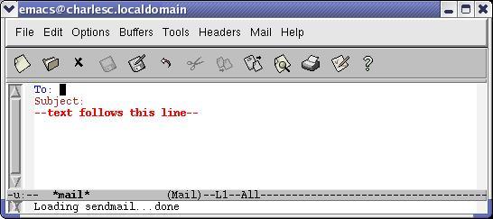 To send a message, Ctrl-X M (or M-X mail) puts you in mail mode. Simply edit a message and send it (Figure 5). As the screen capture shows, you see a skeleton of an e-mail ready for you to fill in the blanks. You can use control character sequences to move to (and create, if necessary) additional headers, like FCC. You can use tab completion in the headers. There, it looks at local system users and the contents of any e-mail aliases you have defined in your .emacs.