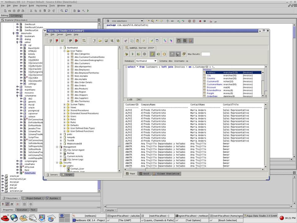 Aqua Data Studio 3.5 is a database query and administration tool that allows developers to create, edit and execute SQL scripts, as well as browse and modify database structures. Aqua Data Studio provides an integrated database environment with a single consistent interface to all major relational databases. This allows the database administrator or developer to tackle multiple tasks simultaneously from one application. Aqua Data Studio includes support for such database platforms as Oracle 8i/9i, IBM DB2, Informix Dynamic Server, Sybase Adaptive Server, Microsoft SQL Server, MySQL and PostgreSQL. New features for version 3.5 include complete schema extractions, SQL scripting of database objects and expanded Query Analyzer options.