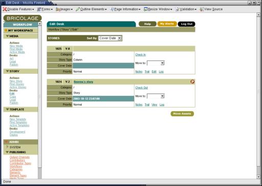 Streamline your Web site with a professional newspaper-like publishing model. With Bricolage, you can set up approvals and keep track of who's editing what.