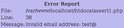 Assertions are implemented in PHP through the use of two functions, assert_options() and assert(). The former should be called in your application's initialization or configuration file, and the latter should be implemented anywhere in your code where you need to enforce the validity of your input. Listing 5 demonstrates how assertions can be used to create an error-control system that generates a simple report when an assertion fails.