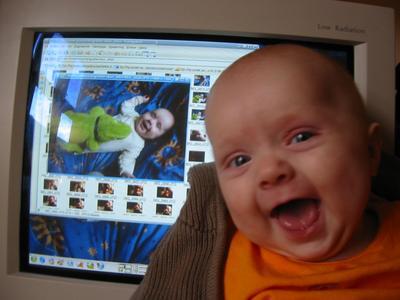 My baby daughter who is only 3.5 months old just loves Linux. After installing SuSE on my new and shiny P4 and introducing her to Geeko the chameleon, she is getting very interested. She especially likes KDE. I guess she is attracted by the Fisher Price Toys-like look and feel of the Keramik theme. The photo shows Idun showing her enthusiasm for KDE.