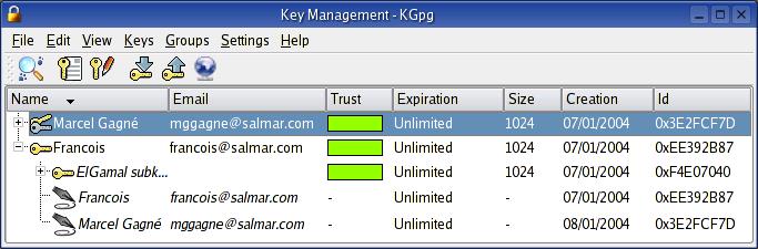 Another graphical administration tool worth your time is gpa. This is the default GNU Privacy Assistant and the official key ring editor of the GnuPG Project. It also is available from www.gnupg.org.