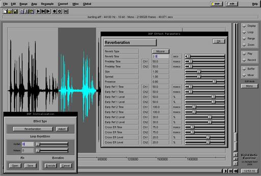 DAP (the Digital Audio Processor) is programmer Richard Kent's contribution to multiplatform soundfile editors. Like MiXViews, DAP's GUI is based on a not-so-new GUI toolkit, the XForms library. Also like MiXViews, DAP's workable soundfile size is limited by your system RAM. In addition, DAP includes some exceptionally well-implemented loop editing tools for AIFF soundfiles. DAP also includes a good selection of DSP modules (extended from Kai Lassfolk's SPKit code) and a handy mono-to-stereo and mono/stereo-to-quad converter.