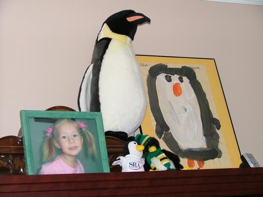 Please find attached a photo of my granddaughter the family artist. She's been admiring my small penguin collection and wanted to add one of her own. So as you see, I now have a Chlo�Original Tux for my collection, and I'm sure her artwork is much better than any I could have done myself. Plus, she's a future Linux user.
