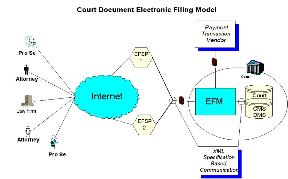 The idea behind electronic court filing is to allow lawyers and the general public to submit documents to the court over the Internet. Law firms already generate an electronic version of any document they plan to file with a court. When filed electronically, the document automatically is placed in a DMS, and the pertinent case information is placed in a CMS.