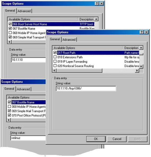 If you would like to maintain the option of changing the kernel without having to hunt around the company to find all the old floppies, now is a good time to get the DHCP network boot working. The LTSP documentation describes how to configure Linux or UNIX servers, but our implementation was running on Microsoft Windows. David, who administers our Windows-based DNS and DHCP servers, set up Netboot in DHCP (Figure 1).