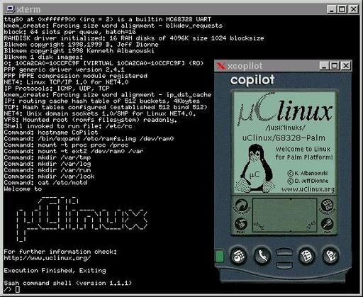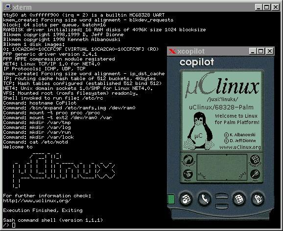Figure 2. uClinux Running under Xcopilot (Palm Emulator)