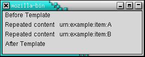 Listing 4 and Figure 2 show an XUL GUI without a tree. This one has a <template> tag instead