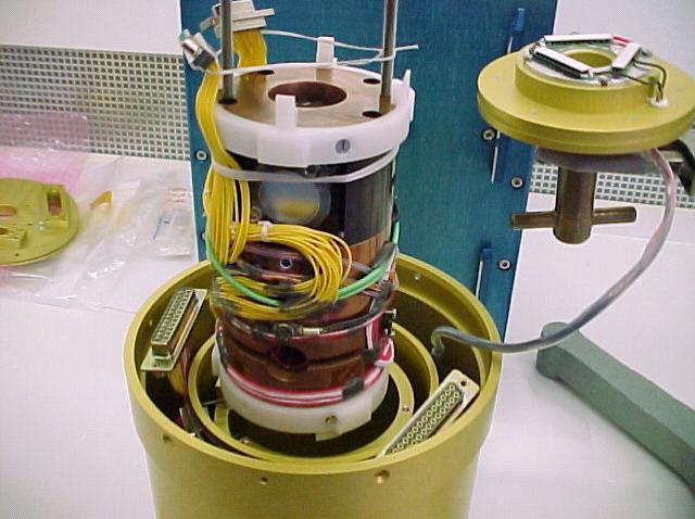 Figure 6. The DSI insert for solidification experiments at COMAT in Toulouse (France). The hole at the top is for accessing video cameras once located inside the Declic facility.