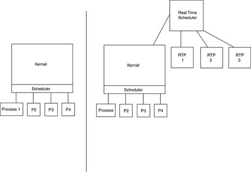 Figure 2. Normal Linux Process Scheduling vs. Real-Time Linux Process Scheduling