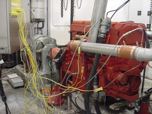 AEI maintains a number of testing chambers for diesel engines, known as test cells. In a cell, an engine is equipped with a number of temperature and pressure measurement devices. A frequency measurement device also is used to measure the rotational speed of the engine. Finally, the engine is connected to a dynamometer, which simulates actual driving conditions by varying the resistance against the spinning engine. This results in generated torque, which is measured as well.