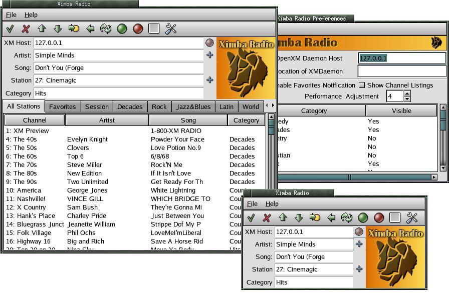 Ximba Radio was born as a graphical front end to OpenXM. The application provides a minimalist main window with current channel information that can be expanded to show channel listings and user favorites. A button bar across the top offers easy management of the radio and station navigation as well as quick access to configuration options. The menu bar gives users the comfort of a traditional desktop application.