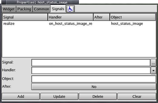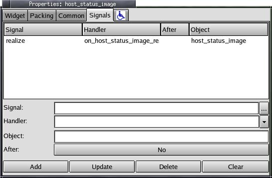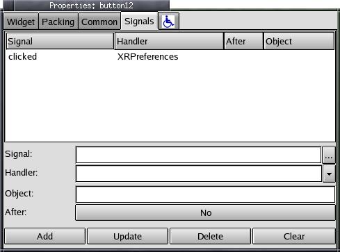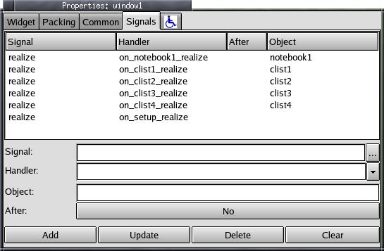 One problem with this methodology is defining at what point a widget ID becomes available. The callback for the realize signal is called only right before the widget actually becomes visible. Sometimes you need access to that widget ID before this happens. Fortunately, this is solved easily. The widget is created in interface.c before the signal handlers are set up. A signal handler is a function that associates a callback with some event.