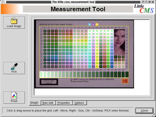 Creating an ICC from this scan is made possible by the LProf profiling tools, available from the Little CMS Web site (see on-line Resources). Run kmeasurementool and open the scan. Go to the Options tab and select the correct pick template for the target used, in this case the Kodak column picker. Go back to the image tab and resize the green target outline. Once the little squares are lined up with the color patches in the scan, select Pick and then Save IT8 sheet. Now use kscannerprofiler to create a custom ICC profile for your scanner by first selecting the correct target vendor and batch ID. Each target comes with a date identifying the batch. Open the IT8 sheet file created above and enter an output profile filename for your ICC profile, then press GO. This ICC profile now can be used to interpret the color space of the scanner.