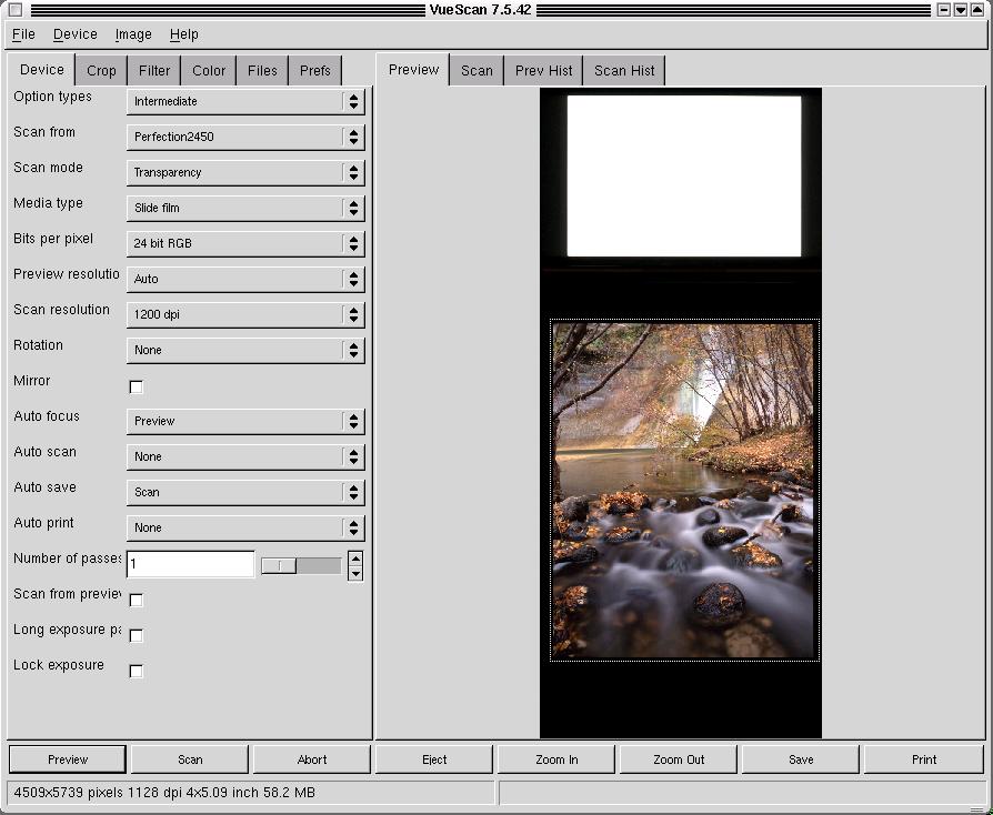 Now that we have profiled our scanner, we can scan an actual transparency. When scanning, it's helpful to know the true optical resolution of the scanner. Scanning at the maximum optical resolution captures as much detail as possible without making your file too large. When saving the file, use the TIFF format for best results as it is a lossless format.