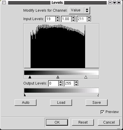 Figure 6. Using Levels in The GIMP for Exposure Adjustment