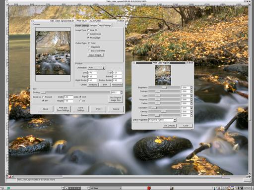 A new breed of inexpensive, photo-quality products are revolutionizing the photo industry, and Linux is there with the tools to put these products to use. In 1990, while editing my first digital image on a Mac SE, I had visions of one day having all the power of a high-end photo retouching workstation in my own digital studio. Several years later, I had the Mac studio I had dreamed of but still was dependent on an outside service bureau for scanning and printing. Around 1996, I saw an early version of The GIMP and was excited at the possibility of moving my digital studio to Linux. Fast-forward to the present: inexpensive photo scanners and printers are available that offer professional results at affordable prices, and the Linux drivers and tools are there to take advantage. A color management work flow is starting to take shape on Linux, and The GIMP is maturing at a steady pace.