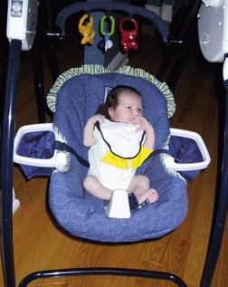 At 9:25 pm on the evening of July 14th, Sebastian Phillip Gagné came into this world. He weighed in at 7 pounds and 14 ounces (3.565kg) and was just over 21 and a half inches long (55cm). This beautiful blue-eyed wonder also has a crop of thick luxurious brown hair. Both baby and mother are doing great! Attached is a picture that requires a little explanation...as you might expect, it was inevitable that somebody would give him something penguin-themed—in this case, a bib. This picture was taken on July 22, 2004.