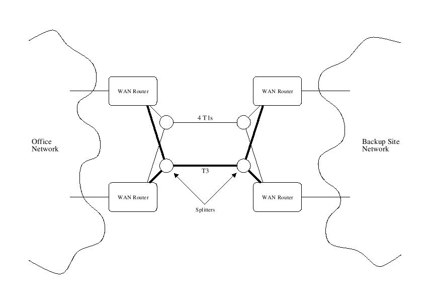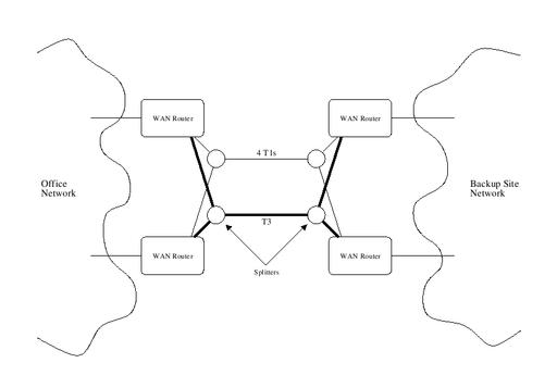 It's critical to have redundant circuits connecting an office to a backup site. Determine who serves your sites and find a backup site served by multiple providers. Our office is connected physically to two providers, so we ended up ordering the T3 from one and the T1s from the other. If you don't research carefully which providers have actual physical connections to your sites, you are likely to end up with all your circuits running through one vendor's cable at some point.