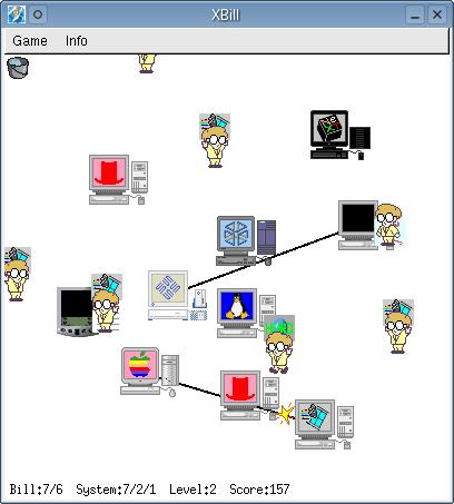 The first game on today's menu is one we've served up before at Chez Marcel, but I just have to mention it again. I'm talking about Brian Wellington and Matias Duarte's XBill (see the on-line Resources section). Somehow, it seems like the perfect introduction to this menu. XBill probably is already installed on your computer. The command is simply xbill. If it is not installed, check your distribution CDs before you download a copy.