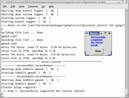 The next stage is to Install OSCAR Server Packages. This is non-interactive and basically sets up packages for use on the server. When it is done, you are alerted by a pop-up window.