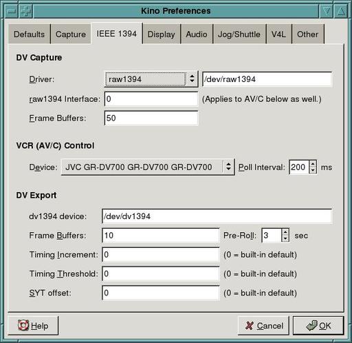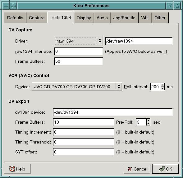 Figure 13. Setting Kino for Exporting Film with IEEE1394 to the Camcorder