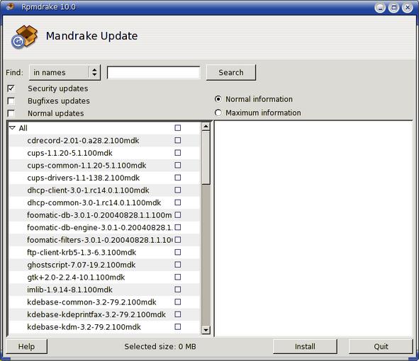 Figure 3. rpmdrake's List of Available Package Upgrades