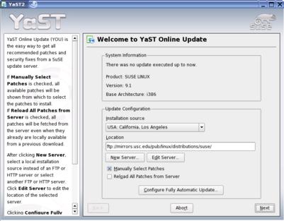 Figure 4. YaST2 Online Update's Mirror Selection Process