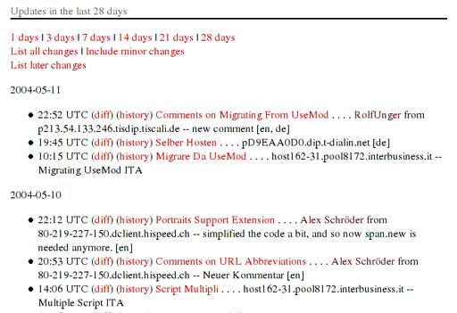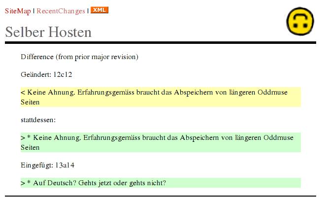 Figure 3. Oddmuse's visual diff makes understanding what has changed between revisions obvious and clear.