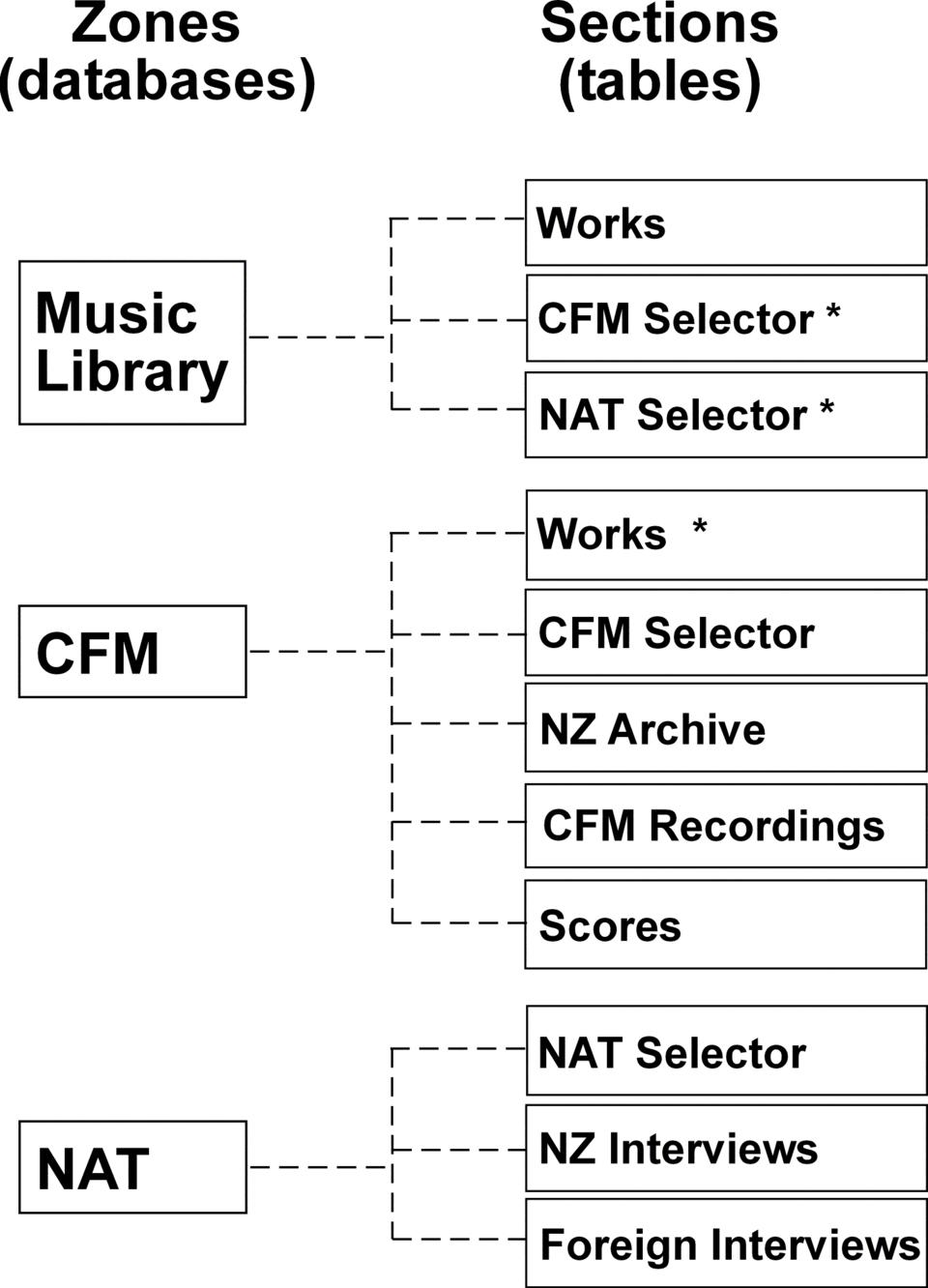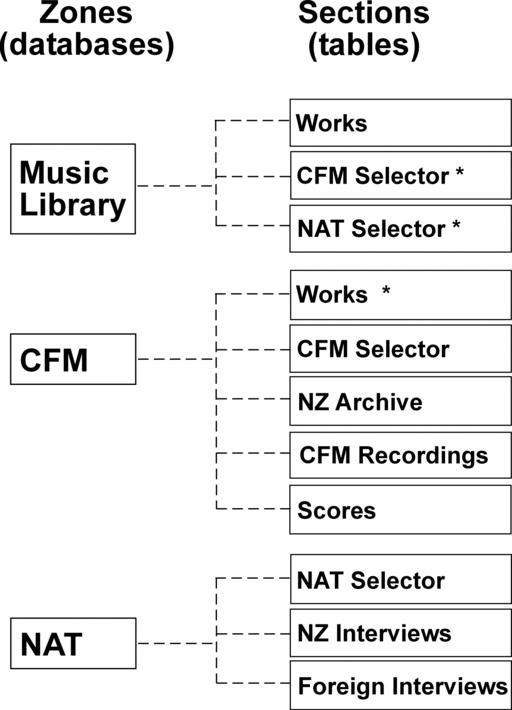 Figure 1. The arrangement of BRAD's data sources. The table marked * represents an alias to another table outside the current zone.