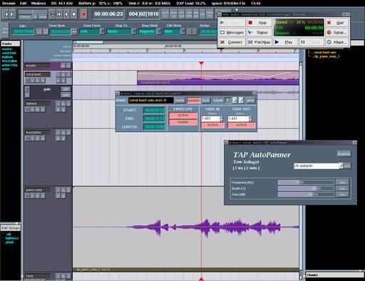 Figure 2. Resized Tracks, the Region Editor and a LADSPA Plugin