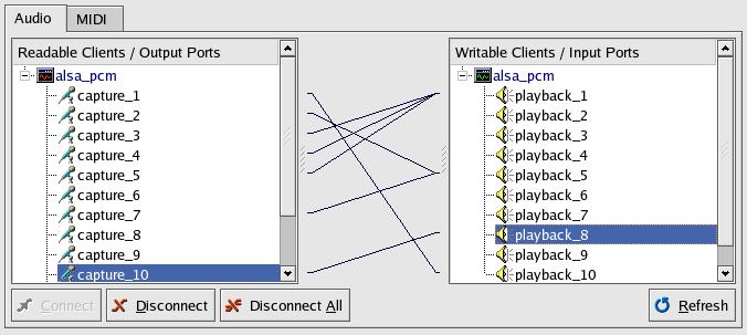 Figure 4. Delta 66 I/O Channels Displayed in qjackctl