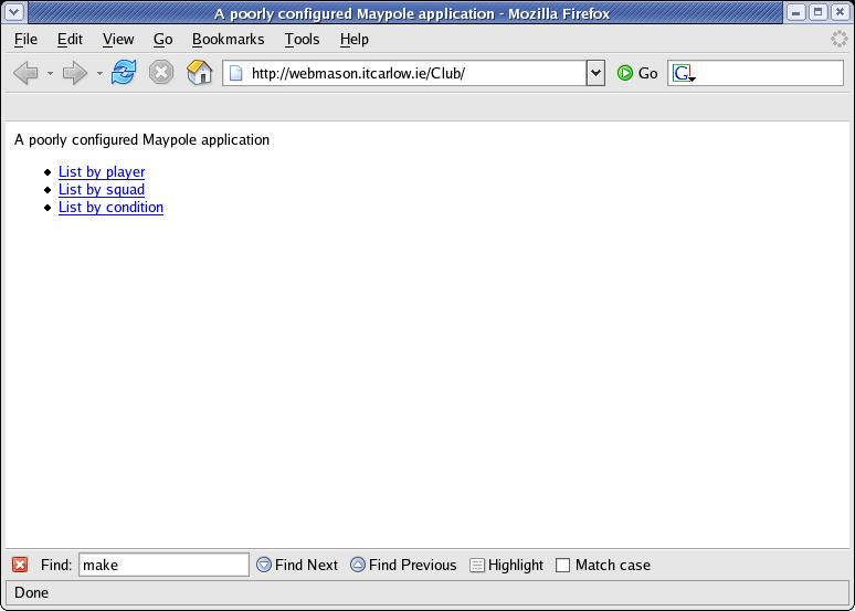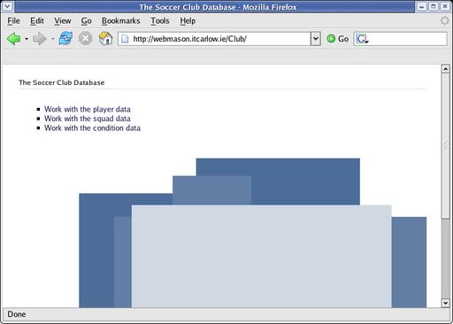 I entered http://webmason.itcarlow.ie/Club/ into the Firefox location bar, and up popped Figure 1, which, although something, was not quite what I was expecting.
