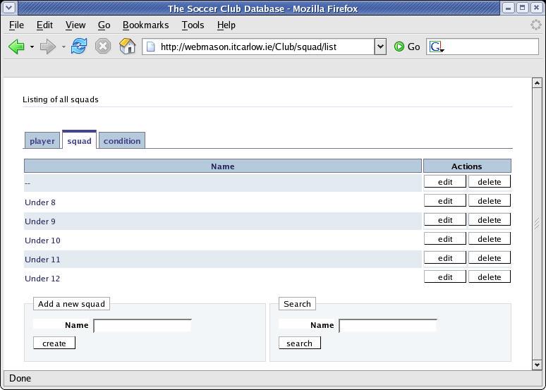 When it comes to squads, my application allows the user to view, edit or delete squad names. Specifying this takes a couple of lines of code, one of which sets up another namespace: