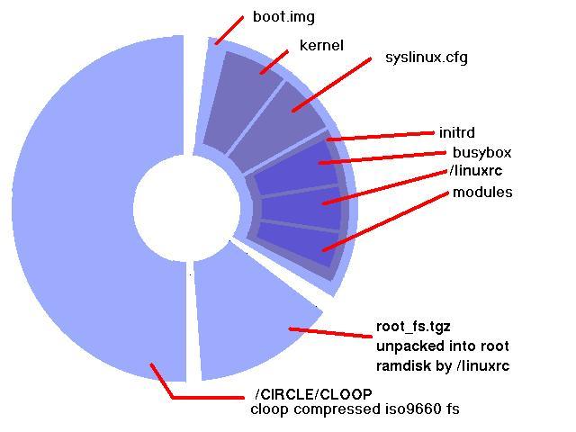 Before the system proper starts up, there are two important things we must do. First, we need to mount the cloop image, load whatever modules the CD-ROM needs, then find and mount the CD. Next, we install the cloop device and mount the inner filesystem on it. Second, we create a ramdisk for the root filesystem and copy the root_fs.tgz image from the CD into it.