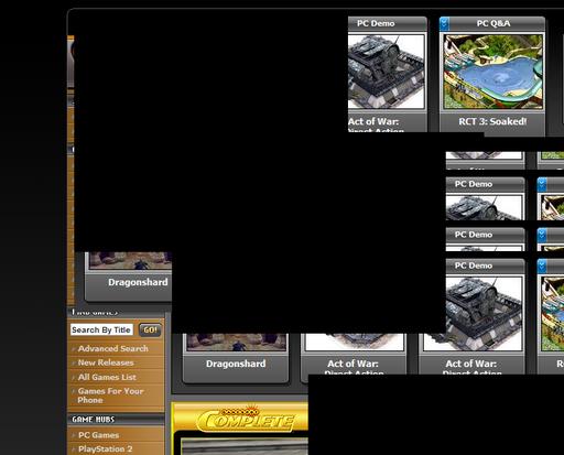 To see the difficulty of this job, visit an image-intense Web site such as gamespot.com. Over broadband, the loading page jumps around in an agony of layout updates while chunky content is dumped into the browser in no particular order. On dial-up, the process is slower and more familiar, but the amount of layout labour is even larger, because there's more time to adjust each received fragment of page. Figure 2 shows the image-heavy GameSpot site, rendered while the images are still coming in.