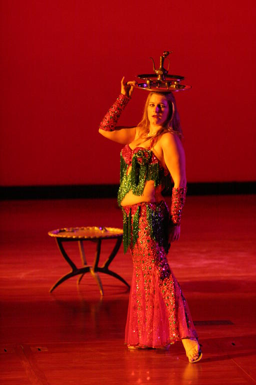 Belly dance is most often seen in intimate venues. However, there are the occasional gala shows where dancers pull out all the stops with high-style Egyptian costumes, such as the one Setareh wore on a large stage at a formal dance concert.
