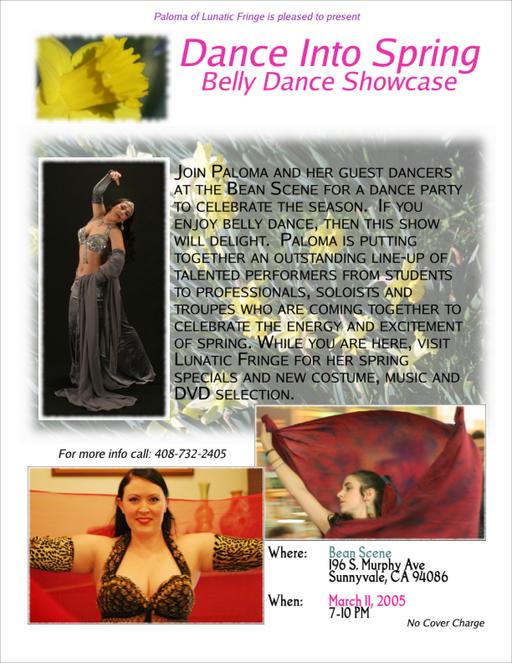 Now we turn to some creative uses of free software in belly dance with two key examples of creating belly dance concert posters. Each example is a little different. In the first, we intentionally wanted to create a new document from scratch for an upcoming event and needed documents suitable for both print and electronic media. In the second example, an event already was being promoted on the Web, but we needed a print version right away, so some novel repurposing was done with free software tools.