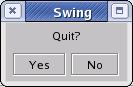 The second system, Swing, made its debut in Java 1.2. Figure 2 is a picture of the gcc-java-compiled Swing application shown in Listing 3. Listing 3 can be compiled with gcj --main=ExampleSwing -o ExampleSwing ExampleSwing.java. AWT uses the native GUI components in the host operating system to draw itself. Swing gives the user finer control over the look and feel of components, and most of the work is performed by Java.