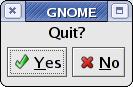 At first glance, Listing 5 may look a little sparse compared to the others. ExampleGNOME's user interface is defined in ExampleGNOME.glade; as a result, there is not much GUI code in the application itself. Instead, libglade-java reads ExampleGNOME.glade and creates the application's GUI components automatically. The GUI code is tied back to our code by event callback methods. Two of these callbacks, whose names and corresponding signals are defined in ExampleGNOME.glade, are on_noButton_released and on_yesButton_released. Listing 6 contains the contents of a portion of ExampleGNOME.glade.