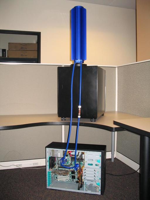Did it work? The processor temperature climbed to about 50° C, then the tubes leading up from the processors to the Reserators warmed enough to start the convection. Temperature fell to 47° or 48° C in normal use, and running full-out, the system holds out below 50° C.