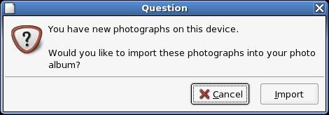 Figure 2. GNOME Volume Manager Prompting on Discovery of New Photos