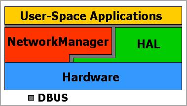 HAL uses a then-nascent but always-promising project called D-BUS as its communications mechanism. On one side, D-BUS is a run-of-the-mill interprocess communication (IPC) system—like CORBA, but a lot easier to use. On the other side, however, D-BUS introduces the concept of the system-wide message bus. In addition to per-user process-to-process communication, D-BUS allows components in a Linux system to send out signals, announcing events or providing information to all who care to listen. Signals can announce when a network connection is obtained or when the laptop battery is running low. Interested applications higher up the stack can listen for these signals and, upon receipt, react.