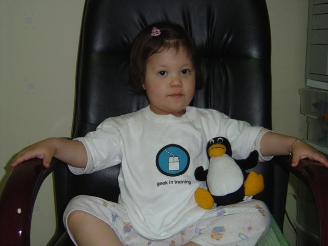 My child is almost two in the picture. The laptop is running KDE on FreeBSD. He quite plainly CALLED it “Linux”. My wife and I both looked at each other and at him and he said it again. He has also said “Ethernet”. We are afraid, very afraid. Thanks for a (decade of a) great publication!