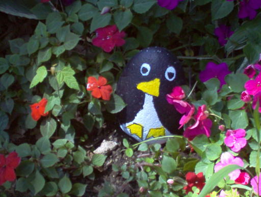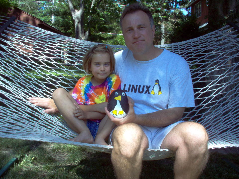 I had a great father's day and hope all the other open-source dads did too. Of course, the best gift was Paige, my going-to-be-seven-in-September daughter—and you will see she painted Tux on a rock for me this father's day. She always has been a good drawer, and her favorite program is Tux Paint with Tux Racer a close second.