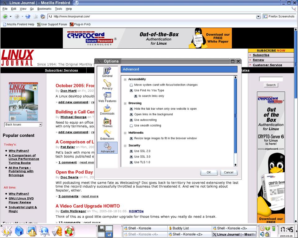 Looking back at past LJ articles on OpenSSH, we found titles such as “Doing It All with OpenSSH 1”, “Doing It All with OpenSSH, Part 2” and “The 101 Uses of OpenSSH”. So combining that with its big win here, it looks like you can do a whole lot with OpenSSH—and you are.