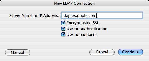 Figure 2. Creating a New OS X LDAP Directory Connection