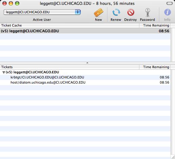 All versions of OS X since v10.3 ship with a GUI application for managing Kerberos credentials named Kerberos.app (Figure 4), but it's buried in /System/Library/CoreServices. You can add this useful app to your dock and have it start at boot. It can automatically renew your credentials when they're expiring and easily show you how much longer your credentials are valid, among other useful features.