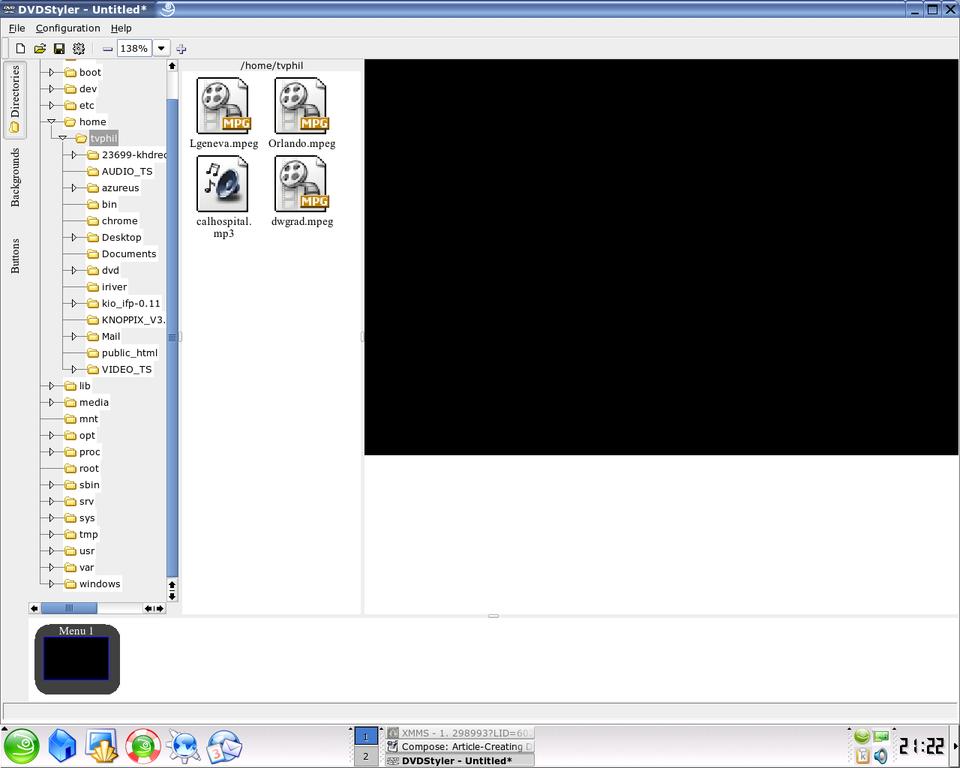As a user of Linux for nearly two years, one thing I have found is that it has been lacking in software solutions for video production. I'm happy to report that this situation has changed for the better. For the past six months, I've have been using Kino 0.7.5 for my video editing with results equal to and in some ways better than what's offered in some Windows video-editing solutions or Apple's iMovie. Now there is a DVD-authoring solution that complements Kino by being user-friendly and creating authored DVDs that will play on most post-2000 DVD players. It's called DVDStyler, and in this article, I show you how to use it and some of the options it offers to create as simple or elaborate a menu as you want for your video DVDs.